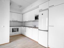 - Jääviileäkaappi, erillisuuni, liesitaso, liesituuletin, mikroaaltouuni, astianpesukone, kaapistot, kiinteät valaisimet.