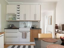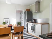 - Liesi: keraaminen, erillisuuni. Työtasot: puu, laminaatti. Kylmäsäilytys: jääkaappi/pakastin. Varustus: astianpesukone, liesituuletin / suodatin. Keittiössä vaihdettiin uuni ja liesi nykyiselle paikalle v. 2015 (kaapelointi lattian alla).