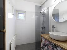 - Suihku, Pesukoneliitäntä, Tilaa pesukoneelle, Käsisuihku, Kaapisto, Allas, Suihkuseinä, WC-istuin, Peili