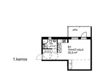 - Pinta-alan peruste: Isännöitsijäntodistuksen mukainen. Ei tarkistusmitattu. Pinta-ala voi siis olla edellä mainittua pienempi tai suurempi.
