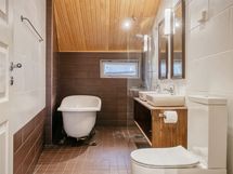 Alakerrassa saunatilan yhteydessä ja yläkerrassa erillinen väljä kylpyhuone. Erillisten WC:n lukumäärä: 2. Erillisen WC:n varusteet: WC-istuin, allaskaappi, bidee-suihku, lattiakaivo ja lattialämmitys.