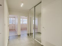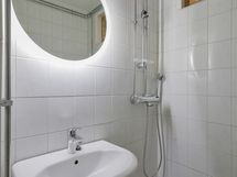 - Pesutilojen varusteet: WC-istuin, suihku, pesukoneliitäntä, pesuallas, lattialämmitys ja uusi valopeili.