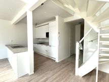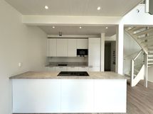 Avoimessa olohuone- ja keittiötilassa on osittain upean korkea huonekorkeus ja isot ikkunat. Keittiössä on iso saareke, jossa on mukava kokkailla modernilla induktioliedellä, jossa integroitu liesituuletin. Lämmitysmuotona asunnossa on poistoilmalämpöpumppu vesikiertoisella lattialämmityksellä ja lämmöntalteenotolla.