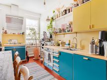 - Kaasuliesi, Jääkaappipakastin, Kaapisto, Liesituuletin, Astianpesukone, Erillisuuni