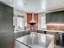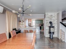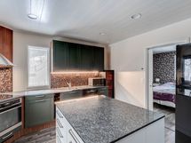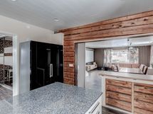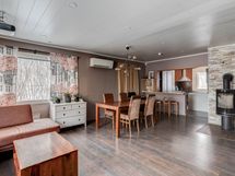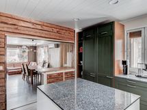 - Keittiön varusteet: Erillinen pakastin (Bosch), jääkaappi (Bosch), uuni (Electrolux), liesituuletin, astianpesukone (Bosch), keittiösaareke ja liesi (Electrolux). Liesi: Induktioliesi. Työtason materiaali: Kivi. Tilava keittiö, melkein avokeittiö olohuoneen kanssa. Uusittu täysin ja tasojen materiaali kiveä. Hirsipintaa jätetty hiukan näkyville tuoden rustiikkista fiilistä.