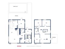 - Terassi on talon eteläpuolella ja yhdistyy uima-altaaseen.