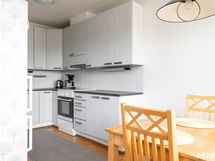 - Keittiön varusteet: Jääkaappipakastin, uuni, liesi, astianpesukone ja liesituuletin. Liesi: Induktioliesi. - Keittiö remontoitu vuonna 2020, jonka yhteydessä uusittu kodinkoneet.