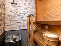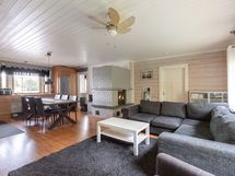 Keittiö/olohuone, 3 makuuhuonetta, wc, kodinhoitohuone, kylpyhuone/wc, sauna, vaatehuone, puolilämmin, avokuisti ja terassi