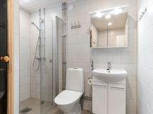 - Suihku, Pesukoneliitäntä, Mukavuuslattialämmitys, Tilaa pesukoneelle, Kaapisto, Allas, Suihkuseinä, WC-istuin, Peilikaappi