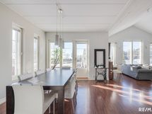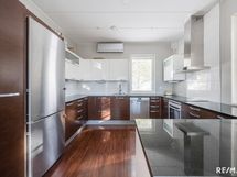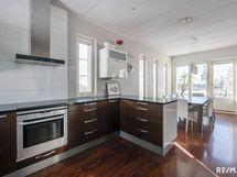 - Keittiön varusteet: Kylmälaite, jossa jää-, viileä- ja pakastintoiminnot., liesituuletin, erillisuuni ja astianpesukone. Liesi: Induktioliesi. Työtason materiaali: Kivi. Avoin ja valoisa keittiö, jossa on runsaasti työ- ja laskutilaa sekä erillinen ruokailutila. Ruokailutilasta on käynti parvekkeelle.