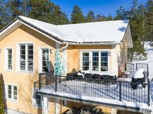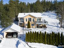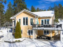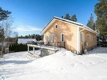 - Pinta-alan peruste: Ei tarkistusmitattu. Pinta-ala voi siis olla edellä mainittua pienempi tai suurempi. Annetut pinta-alatiedot perustuvat 15.3.2006 päivättyyn rakennuspiirustukseen, josta ei ole yksiselitteisesti todettavissa, mitkä tilat täyttävät asuinhuoneelle asetetut vaatimukset. Ilmoitettu kokonaispinta-ala sisältää myös asumista palvelevia tiloja, kuten eteisaulan, takkahuoneen, kodinhoitohuoneen, pukuhuoneen, kylpyhuoneen, saunan, wc-tilat sekä varaston. Pinta-aloja ei ole tarkistusmitattu standardin SFS 5139 mukaisesti, ja tiedot ovat suuntaa-antavia.