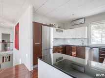 Keittiön ulkoseinälle on asennettu ilmalämpöpumppu, joka toimii sekä viilennykseen että lämmitykseen.