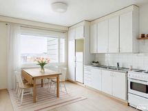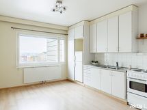 - Liesi: sähköliesi. Työtasot: laminaatti. Kylmäsäilytys: jenkkikaappi. Varustus: liesikupu, varattu paikka astianpesukoneelle. Vanha keittiö.