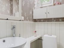 - Pesutilojen varusteet: Suihkukaappi, pesukoneliitäntä ja allaskaappi. Erillisten WC:n lukumäärä: 1. Erillisen WC:n varusteet: WC-istuin, peili, allaskaappi ja bidee-suihku.