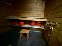 Kuvaus: Suihku on saunan puolella. sähkökiuas