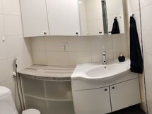 Suihku, Suihkuseinä, Pesukone, Kuivauskaappi, Allaskaappi, Peilikaappi, Laattalattia, Laattaseinä, Avattava ikkuna, Erillinen WC, Lattialämmitys