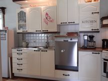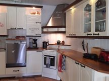 - Tilaa isolle ruokapöydälle, Paljon työskentelytilaa, Suuri tiskipöytä, Astianpesukone, Keraaminen liesi, Liesituuletin, Liesi tai uuni erikseen, Jääkaappi