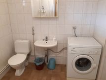 - Suihku, Suihkuseinä, Peilikaappi, Iso komero, Lattialämmitys, Avattava ikkuna, Laattalattia, Laattaseinä, Pesukonevalmius, Pesukone