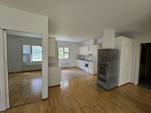 Tilaa isolle ruokapöydälle, Paljon kaappitilaa, Paljon työskentelytilaa, Suuri tiskipöytä, Laminaattitasot, Astianpesukone, Sähköliesi, Liesi tai uuni erikseen, Liesituuletin, Jääkaappi, Jää-pakastinkaappi