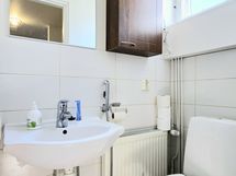 Isossa uudehkossa n.28m² lisäeristetyssä pihavajassa on myös lisäksi puulämmitteinen kamina ja mm. lattiassa kosteutta kestävä muovipinnoitettu vaneri, joten tämä hulppea tila soveltuu mm. purjeiden, Suomen lippujen ja hevosloimien kuivatustilaksi mainiosti. Lisäksi hevosloimet/isot liput/pienpurjeet/työhaalaripyykki on kätevä pestä autotallista muutetussa lisäeristetyn varastotilan pyykinpesukoneessa mainiosti. Päärakennuksen näyttävässä kylpyhuoneessa on myös tietenkin pesukoneliitäntä.