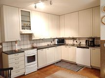 - Keittiön varusteet: Jääkaappipakastin, liesi, liesituuletin ja astianpesukone. Liesi: Keraaminen liesi. Reilunkokoinen keittiö. Kaapistot uusittu 2011 ja ovat siistikuntoiset.