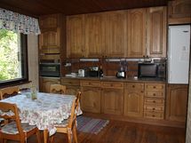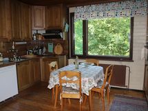 Tilaa isolle ruokapöydälle, Paljon kaappitilaa, Paljon työskentelytilaa, Laminaattitasot, Astianpesukone, Sähköliesi, Liesituuletin, Liesi tai uuni erikseen, Jääkaappi, Pakastin