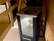 - Kuvaus: Saunassa sähkölämmitteinen Helon Heti valmis-kiuas.