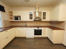 Varusteet: jääkaappipakastin, astianpesukone. Työtaso: laminaattitaso. Liesi: keraaminen liesi, erillisuuni. Keittiö uusittu 2012