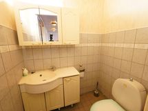 Lattiaan asennettu WC, suihku, pesuallas, lattialämmitys. WC: Lattiaan asennettu WC, pesuallas, peilikaappi