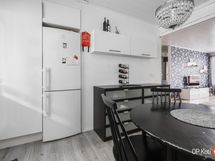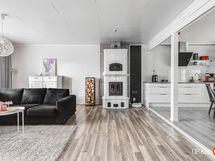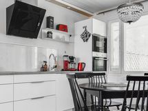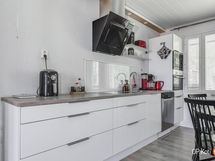 - Jääkaappipakastin (2018), erillisuuni (integroitu, 2018), liesitaso, induktioliesi 2018, liesituuletin, mikroaaltouuni (integroitu 2018), astianpesukone, kaapistot (Petra-keittiö), kiinteät valaisimet, pöytätasojen materiaali: laminaatti. Kalusteiden ovissa hidastimet.