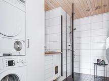 - Sauna, sähkökiuas, kylpyhuone, erillinen wc, suihku, suihkuseinä, peilit, kaapit, allaskaappi, pesukoneliitäntä, lattialämmitys, kiinteät valaisimet. Kylpyhuone remontoitu 2012. Kalusteet uusittu 2019.
