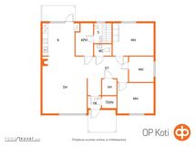 - Koko rakennuksen rakennusala on rakennuspiirustusten mukaan 230 m² ja asuntoala 200 m². Katon peruskorjaukseen liittyvän rakennuspiirustuksen mukaan koko rakennuksen huoneistoala on 192 m².
