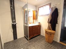 - Pesutilojen kuvaus: Suihku, suihkuseinä, allas, pesukoneliitäntä, lattialämmitys (sähkö). Kylpyhuone remontoitu 2013. Erillisen WC:n kuvaus: Wc-istuin, bidesuihku, allas, kaapistot.