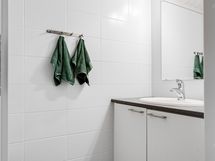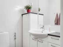 - Pesutilojen kuvaus: Kylpyhuone/wc: wc-istuin, allas, 2 suihkua. Erillisen WC:n kuvaus: Ylä- ja alakerrassa wc:eet: wc-istuin, bidesuihku, allas, kaapistot.