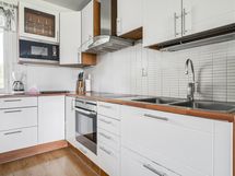 - Kaapistot, liesitaso, erillisuuni, liesituuletin, astianpesukone, jääkaappi, pakastinkaappi, leivinuuni.