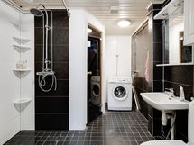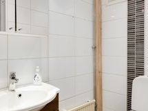 - Suihku, Pesukoneliitäntä, Tilaa pesukoneelle, Kaapisto, WC-istuin, Peili