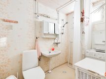 - Kylpyhuone, suihku, peilikaappi, pesukoneliitäntä. Wc-istuin , allas, Kylpyhuoneen pinnat muovimattoa. Pinnat uusittu vuonna 1986.