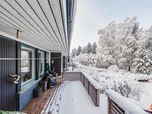 - Olohuoneesta ja keittiöstä näkymä oleskelupihalle, makuuhuoneesta etupihalle.