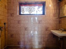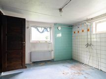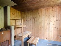 Kuvaus: Kellarikerroksessa on todella askeettinen vanha saunatila.