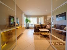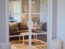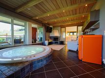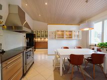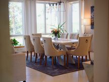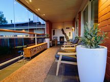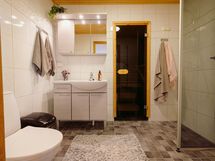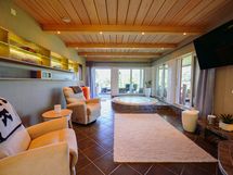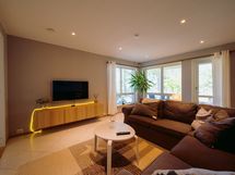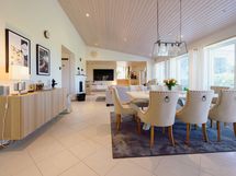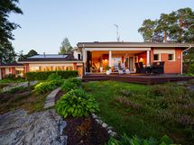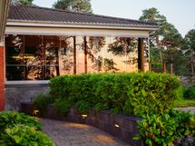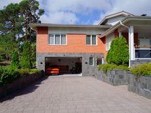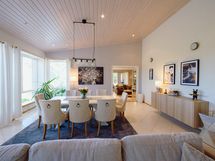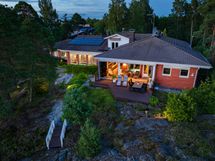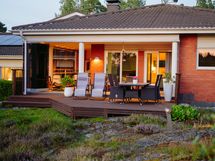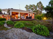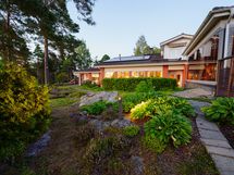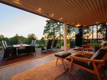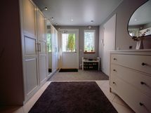 The spacious home, which was connected to a smaller apartment, has now been combined into one large entity. The large windows of the house open out to wonderful panoramic views over the center of Karjaa. A relaxing jacuzzi awaits in the atmospheric fireplace room, from which you can directly access the house's covered terrace to enjoy the sunsets by the fireplace. The house has four spacious bedrooms, and the master bedroom has two walk-in wardrobes, which makes everyday life smooth.