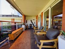 Denna helhet består av två bostäder som slagits ihop och från de stora fönstren öppnas en underbar panoramautsikt över Karis centrum. Huset har ett brasrum med öppen spis och jacuzzi, samt en täckt terass, som inbjuder till stämningsfulla stunder i solnedgången. Här finns fyra rymliga sovrum; master bedroom med två klädrum ger vardagslyx.