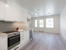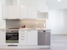 Varustus: jääkaappi/pakastin, liesituuletin, astianpesukone. Liesi: induktio.