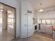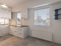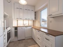 - Jääkaappipakastin, lattialiesi keraaminen, liesituuletin, astianpesukone, kaapistot, kiinteät valaisimet led-kisko kaapiston välitila. Keittiö uusittu v. 2017. Myös koneet vaihdettu silloin.