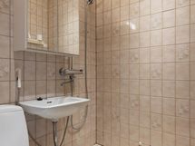 - Kylpyhuone, suihku, peilikaappi, kiinteät valaisimet.