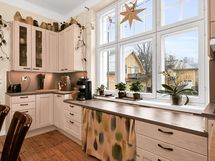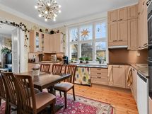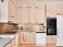 - Jääkaappi/pakastin, keraaminen liesi,, erillisuuni- ja taso, liesituuletin filtterillä, astianpesukone, kiinteät valaisimet, kaakeliuuni