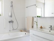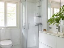 - Pesutilojen kuvaus: Talossa on kaksi kylpyhuonetta, toinen alakerrassa ja toinen yläkerrassa. Varustus: kylpyamme, suihkuseinä, wc-istuin.