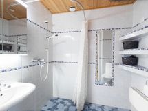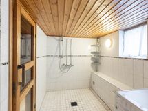 - Sauna, sähkökiuas hetivalmis, kylpyhuone ensimmäisessä asuinkerroksessa, erillinen wc yläkerassa, suihku kellarissa ja ensimmäisessä asuinkerroksessa, peilit yläkerran wc ja ensimmäisen kerroksen kph, peilikaappi kph, pesukoneliitäntä pesuhuoneessa kellarissa, lattialämmitys pesuhuoneessa, kiinteät valaisimet. Pesuhuone , Hyllyt kph. Kylpyhuoneeseen on uusittu WC-istuin, lavuaari ja peilikaappi v. 2023