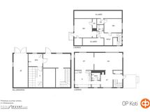 Asuinrakennuksessa on asuinkerros, yläkerta joka osittain matalaa tilaa sekä kellarikerros.