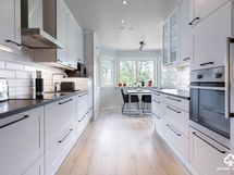 - Keittiön varusteet: Jääkaappi, erillinen pakastin, astianpesukone, liesituuletin ja mikroaaltouuni. Liesi: Induktioliesi. Työtason materiaali: Laminaatti. Vuonna 2019 täysin uudistettu moderni vaaleanharmaan sävyinen Puustellin keittiö.