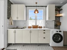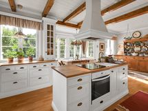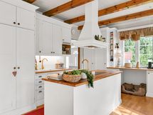 - Kaapistot Lidhults, jääkaappi (integroitu), pakastin (integroitu), astianpesukone (integroitu), induktioliesi, uuni, erillisuuni- ja taso, liesituuletin hormiin, 2 tiskiallasta, mittatilaus ruokakomero.